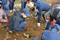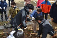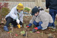 生徒たちは地域の皆さんと協力しながら、「きれいに咲いてほしいね」など話しながら、一株ずつ丁寧に植え付けを行いました。