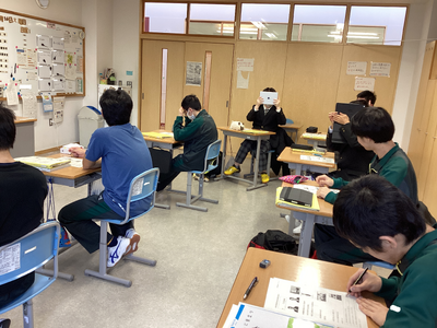 社会科の授業では毎年選挙についての勉強をしています。選挙公約の見方や実際の投票の仕方など、生徒同士の対話を通して学ぶことができました。