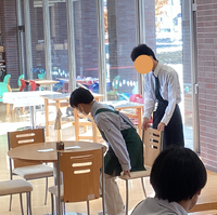本校生徒は、身だしなみの整え方やお盆の持ち方、姿勢などを紹介しました。水の入ったコップを2つお盆に乗せた状態で歩く練習も行いました。交流を終え、「普段教える機会がないため、正しい動作を再確認することができた。」、「今回学んだことを高等聾学校に戻ってからの学習に生かしたい」といった感想を発表しあいました。