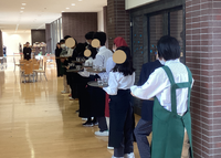 11月13日(木)に本校福祉サービス科1学年と北海道高等聾学校のカフェ営業に関わる学習をしている1~3年生の8名が交流学習を行いました。前回と前々回では,お互いの学校を訪問してそれぞれの学校を紹介したり交流を行ったりしました。3回目となる今回は、お互いがこれまでに練習してきた接客技術を紹介しあいました。高等聾学校の生徒の皆さんの接客を見て、本校の生徒は「お客様が座るときに椅子を引いてあげる気遣いがよかったのでまねしたい」、「コースターを使うことで音が出なくて良いと思った」などと感想を述べていました。