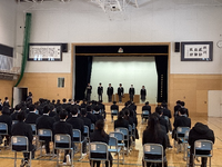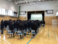 冬休みが終わり、1月14日(水)から3学期が始まりました。3年生は卒業まであと少しの登校日数となりました。1,2年生にとっては次の学年に上がるための準備期間となる大切な時期になります。生徒たちはそれぞれの目標を胸に、真剣に始業式に臨む姿が見られました。