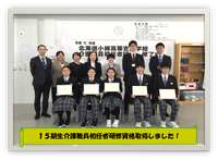 15期生5名が介護職員初任者研修の資格取得をし、2月13日(金)に修了式を実施しました。保護者等の皆様にも参加していただき、一緒にお祝いすることができました。
