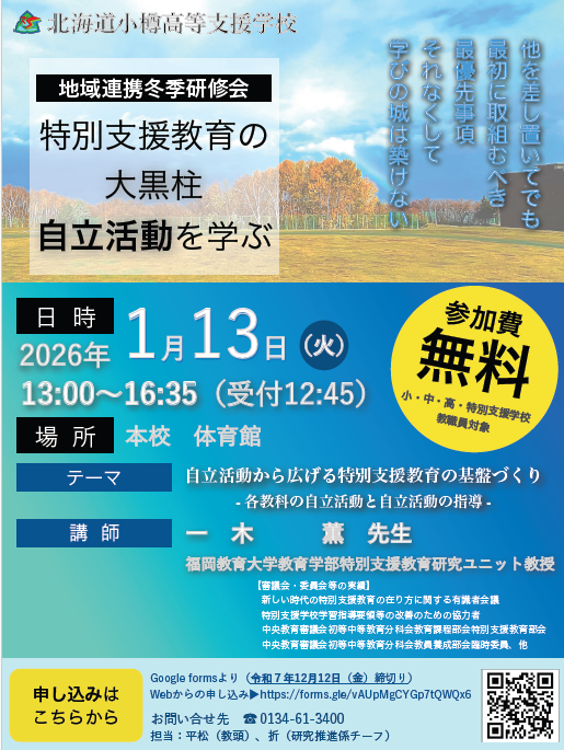 日頃より小樽高等支援学校のホームページをご覧いただき、誠にありがとうございます。